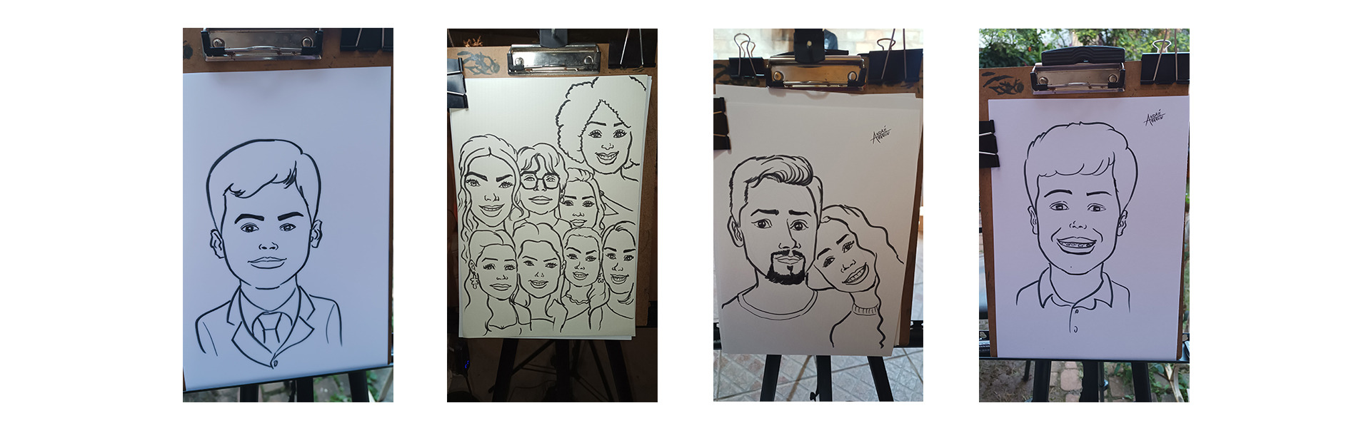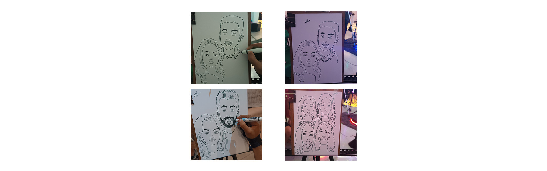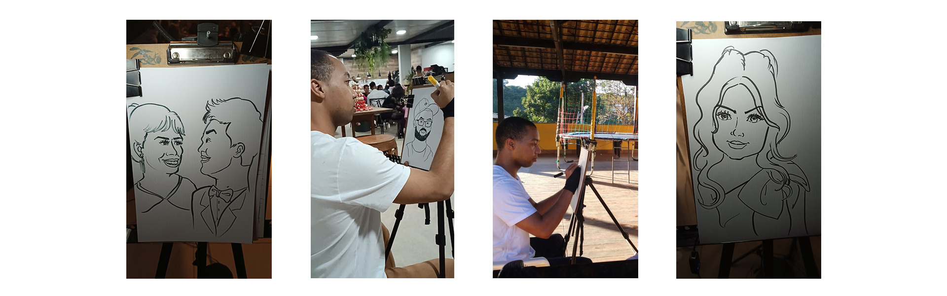 Caricatura ao vivo com papel e caneta marcador (desenhos preto e branco)